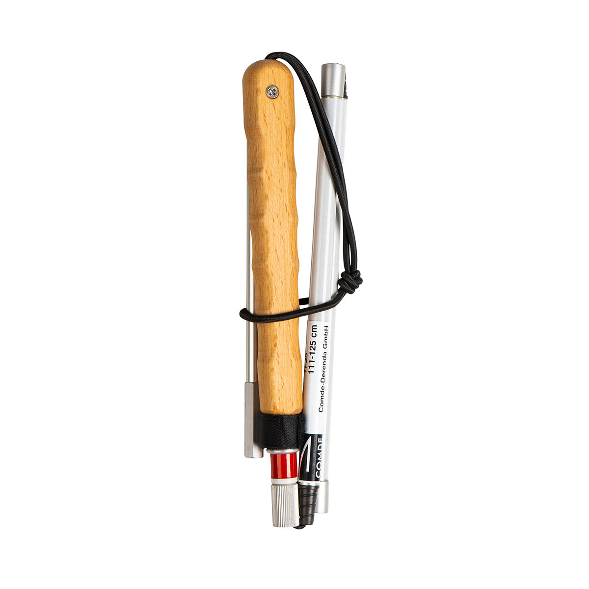 Canne à tâtonnement longue de haute qualité en aluminium, dont la partie supérieure est en outre télescopique. Il en résulte une longueur de canne réglable individuellement.