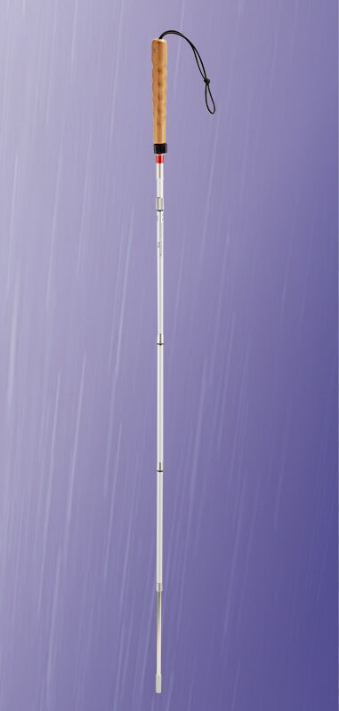 Hochwertig verarbeiteter Langstock-Taststock aus Aluminium, der zusätzlich im oberen Teil teleskopierbar ist. Dadurch ergibt sich eine individuelle einstellbare Stocklänge.